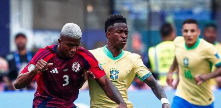 La 'verdeamarela' dirigida por Dorival Júnior tuvo cerca de un 80% de posesión y vivió en campo rival casi todo el tiempo, pero no supo encontrar la fórmula para atacar el bloque bajo de Costa Rica. Las posesiones eran lentas y faltas de claridad, imprevisibilidad y verticalidad. Vini lo intentó, pero siempre se enfrentaba a un dos contra uno y solía salir perdedor ante los duelos físicos que le plantearon los costarricenses. De hecho el futbolista del Real Madrid se desesperó en diversas ocasiones al considerar que se estaban empleando por encima del reglamento sin que Ramos, el colegiado mexicano señalara nada.