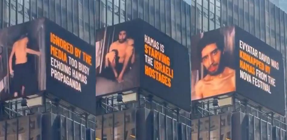 No contentos solo con eso, en la noche del pasado martes se empezó a proyectar un vídeo en la gran pantalla del Times Square, en Nueva York, de un rehén israelí retenido por Hamás. En el vídeo aparecían las frases: "Hamás está matando de hambre a los rehenes israelíes", o "Ignorado por los medios de comunicación que están muy ocupados dando voz a la propaganda de Hamás".