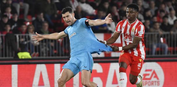 De Marcos ha sido el encargado de dar la cara después de la dura derrota encajada en el Benito Villamarín. El lateral de Laguardia ha explicado la jugada de la expulsión de Nico Williams al filo del descanso. “Esta mosqueado. La primera tarjeta no se la saca por la falta, le ha dicho que le había protestado. Son situaciones a evitar, que nos condicionan. Entre los dos ha sido excesivo. Se pierde la magia del fútbol, que es lo bonito”, ha explicado en las cámaras de DAZN. Ya después en zona mixta, ha añadido que aplaudir al árbitro, lo que ha hecho su compañero después de ver la primera amarilla, "es tarjeta para todos"