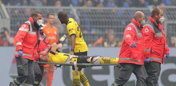 Marco Reus, centrocampista del Borussia Dortmund, fue retirado hoy en camilla tras torcerse el tobillo derecho a la media hora del partido de la Bundesliga entre su equipo y el Schalke.