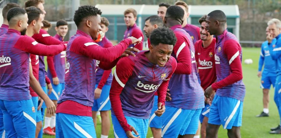 Alejandro Balde, lateral zurdo del FC Barcelona, fue uno de los protagonistas en el entrenamiento de este lunes con motivo de su 18 cumpleaños. Sus compañeros le felicitaron con el tradicional 'túnel de las collejas' que aceptó con resignación y buen humor.