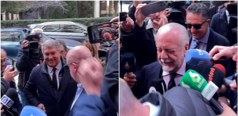 Joan Laporta y Aurelio De Laurentiis, a su llegada a la comida de directivas del Barça-Nápoles