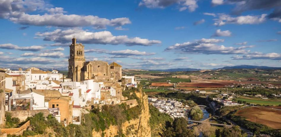 Arcos de la Frontera es uno de los pueblos blancos más espectaculares de Andalucía, conocido por estar encaramado sobre un imponente acantilado que domina el valle del Guadalete. Su posición elevada crea la sensación de que sus casas blancas, apiladas sobre la roca, flotan sobre el vacío. Esta imagen es una de las más icónicas de la provincia de Cádiz y lo convierte en un destino perfecto para quienes disfrutan de los paisajes vertiginosos.