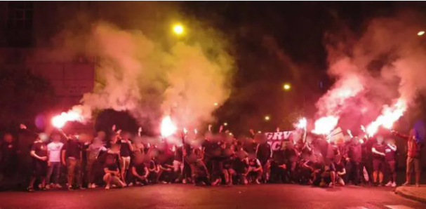 Un grupo de Boixos Nois lanzaron pirotecnia contra las furgonetas de los Mossos d'Esquadra. También iban armados con lanzas fabricadas con cuchillos en las puntas.
