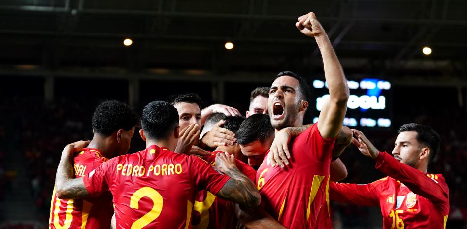 Alineación de España: David Raya; Pedro Porro, Dani Vivian, Aymeric Laporte, Cucurella; Martín Zubimendi, Fabián Ruiz; Merino; Alex Baena, Mikel Oyarzabal; y Álvaro Morata. DT: Luis de la Fuente.